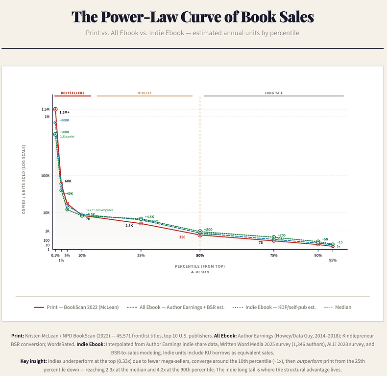 A fellow author I respect recently shared some insights on the economics of being a writer. The results were not as detailed as I like, so I opted to have Claude do deep diving. After reviewing 471 sources, it came back with some interesting findings.